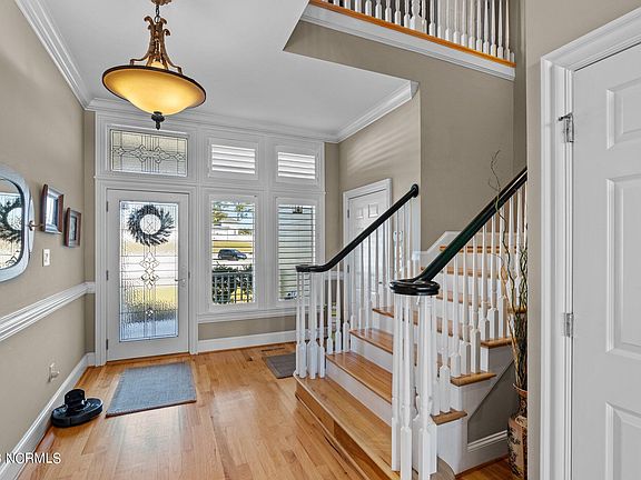 Wake up to sun over the expansive Neuse River! This will be your view from the master bedroom balcony of one of the largest townhomes in The Links at Wayfarers Cove. You'll enjoy the elegant style combined with easy living comfort. The big water view is the star of an open first floor plan, perfect for entertaining. A large entrance foyer welcomes you to the open space living, dining room and kitchen. Enjoy river sunsets from the screened porch and deck. A large en suite bedroom and a guest half bath complete the first level. On the second level you'll fall in love with the master bedroom and its waterfront balcony, luxury bath, and walk-in closet. A guest bedroom, media room and guest bath complete the second floor. An elevator shaft is in place and provides extra storage space if not needed. A two car garage has plenty of room for a paddle board or golf cart. This may be the best location in the county, not requiring Flood Insurance, wide Neuse River view, across the street from Minnesott Golf Club with an 18 hole course, swimming pool and restaurant that is open to the public, nearby Wayfarers Cove Marina, less than 5 minutes from the free Minnesott Beach ferry that takes you to Beaufort and Atlantic Beach, close to Oriental - a friendly, quaint, fishing village with fun, seasonal events and a short drive to New Bern where you can enjoy the shops & restaurants. Yes, you can have it all! Please see attached Feature Sheet for more informatioon.