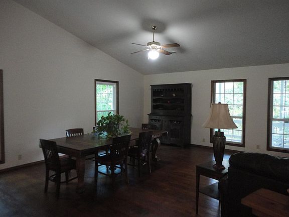 If you have been looking for a private lake home with lots of room to roam, then this is it. This home sits on apx 3 Acres. Lodge Style home with massive open floor plan. Main level provides a sprawling area for entertaining and features a wood burning stove. Amazing view of the lake via French doors that open out onto the upper balcony which runs the length of the house. Step downstairs and you are greeted with another huge family game room, with solid oak wet bar, pool table and safe room. From the lower level you can enjoy the covered porch while viewing the lake. Large yard with garden area, fire pit, gazebo, 16x30 work shed and plenty of parking spaces. One of the most amazing features of this property is the rocky outcropping facing the north above the swim pier and lake. The swim pier is easily accessed via the lower drive, with a short set of stairs down to the gangway. Property located on Simpson Creek over 400 ft. waterfront, with seasonable water. Lots to see and do here.