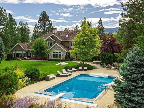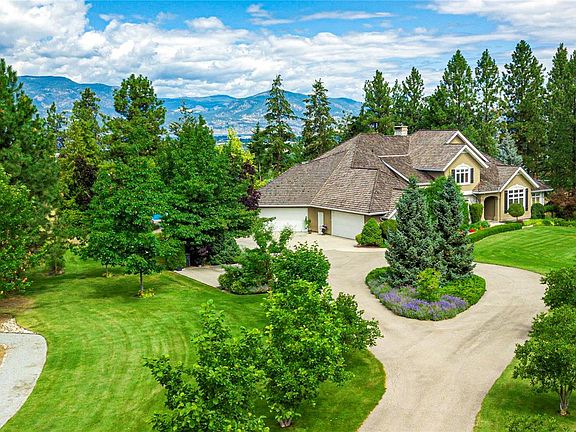 Arrive through the gate and wind your way down the driveway of this private 12 ac estate acreage and feel the stress disappear. Located in Kelowna's sought after Crawford Bench and only minutes away from the city and lake this property is truly a lush retreat with a large pool, mature landscaping and a feeling of privacy and serenity. Two outdoor patios invite al fresco dining or for enjoying the calming green space. Inside, fall in love with the scale, quality and attention to detail in the 7 bdrm 7000 sq ft custom Fawdry built home. Highlights include a designer cherry wood kitchen with high end appliances, home gym, office, gift wrapping room, home theatre and a multipurpose/games room. Comfort meets luxury in a serene setting. Large master suite on the main floor featuring bright corner windows with views of the forest, lake and valley and direct access to the patio and yard. Spa-like ensuite and walk-in closet.