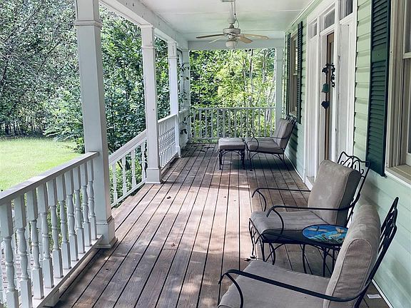 Unique Multi-generational home! Original home built in 1980's and second home built in 1940's was brought in and they are joined by a common wall. Zoned residential with one electric bill. 1st home (in back) is 3/2 with large open, tiled area to the kitchen (all appliances remain), extra-large living room (with pool table), laundry, and enclosed sunroom. Doors open to backyard, pool house and in-ground pool, fireplace and gazebo. Front home is 2/2 with hardwoods and original doorframes. Built in bookcases, fireplace, formal dining area, sewing room, separate kitchen with breakfast area and large laundry room. Rocking chair front porch overlooking 1/2 of the 5 acres. Great schools. This is a must see to appreciate all the unique features and highlights.