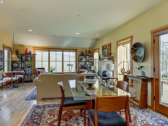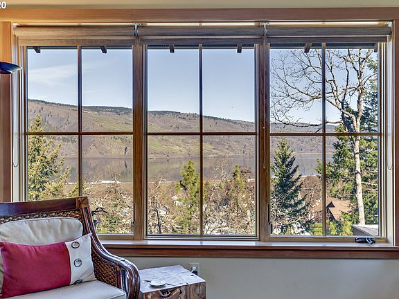 Get away to stunning views of the Columbia River, Coyote Wall & Syncline. Open concept bluff home designed by Portland architect Jeffery Miller. Light-filled 3 bed/2bath w/mster on main fl. Designer touches throughout. Oversize custom metal/wood windows & blinds, wood flrs on main. Custom cedar siding. 2 view decks. Prof. landscape design w/fenced raised gardens. Detached oversize 2 car garage. Must see to appreciate. Available with lot RMLS #20510987 for $790,000.