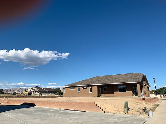Great view from this Ranch style "RUBY" floor plan in Emerald Ridge Estates, primary suite includes barrier free shower, soaking tub, double under-mount sink vanity, large walk-in closet. This home has 560+ sq ft of covered patios: front (with view of Mt Garfield & Grand Mesa)and back porch with views of the Monument. Stucco and Stone Exterior allows easy maintenance. Vaulted Ceilings in the main living area. The 122' deep lot give you a great backyard that is already landscaped and timed and pressurized irrigation and includes front and back yard landscaping plus the 6' Natures Composite fencing. RV parking and a finished 8 x 12 storage area with electrical, sheetrock and painted. This home is ready to go!!