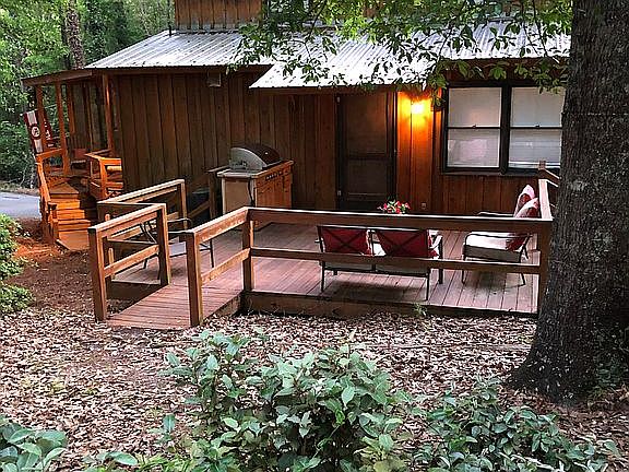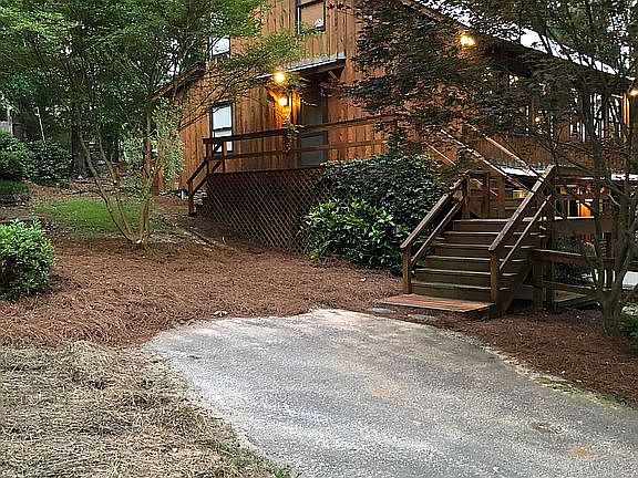 This beautiful 2,535 sq ft cedar and stone cabin like home nestled in a wooded lot in a golf course community just outside city limits. Vaulted ceiling in the large family room with eat in kitchen makes it perfect for entertaining. It has 4 bedrooms 3 full baths with one being a Jack and Jill bathroom between the 2 upstairs bedrooms which is perfect for children. The downstairs houses a large master suite with an oversized walk -in closet and master bath. The master bath includes a Jacuzzi tub, tiled shower, and large vanity. Adjacent to the master bedroom is an enormous laundry room/exercise space that would make anyone envious. The peaceful screened in porch is a wonderful way to enjoy the beautiful wooded lot that surrounds the home. The 3 additional decks also allow for great entertainment.