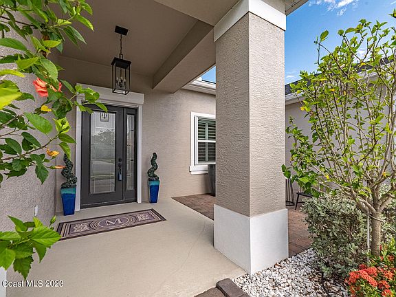 Great opportunity to own this 2020 built home on city water and sewer in gated Hawks Ridge community. Hawks ridge is a small community consisting of only 14 homes with very reasonable HOA dues. Centrally located near everything Melbourne and Palm Bay have to offer with close proximity to L3 Harris, Northrop Grumman, shopping, and only 20 minutes from the beach! From the moment you enter this home you will be very impressed with the grand open feel, high ceilings, and crown molding throughout. Open floor plan with split bedrooms and two separate living areas great for entertaining family and guests. Beautiful LVP flooring throughout the entire home including the bedrooms (No Carpet!). The kitchen features a combination of granite and quartz countertops, upgraded appliances, white subway tile backsplash, and large breakfast bar. The primary suite is very generous in size with a large walk in closet, dual sinks, and stand up shower. Plantation shutters have been installed on all windows and doors as well as accordion shutters on the exterior for peace of mind and low insurance. Professional landscaping around the whole outside of the home with large covered back porch and newly installed paver patio area. New gutters with leaf guard system and underground drainage. You also have an oversized driveway and 3 car garage perfect for multiple vehicles, storage, and hobbies. This home is completely turnkey and needs to be seen in person to appreciate the quality it has to offer. Schedule your showing today!