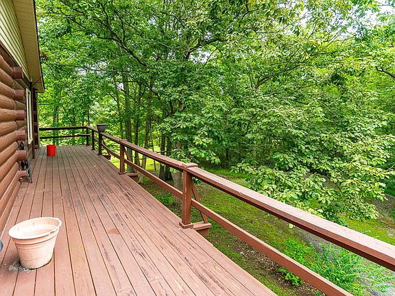 Have you ever dreamed of living in a log house nestled in a private setting? This is your opportunity! This 4 bedroom home is situated on 5 gorgeous acres. There is a natural spring that runs through the front yard. Enjoy relaxing on the beautiful wraparound porch or entertaining in the 16X25 Sunroom that is heated and cooled. This home has a large kitchen with a pantry, open concept, and two separate detached garages. Property is being sold well below market value.