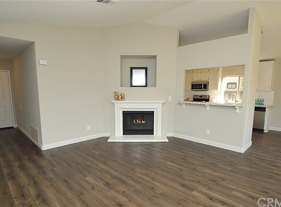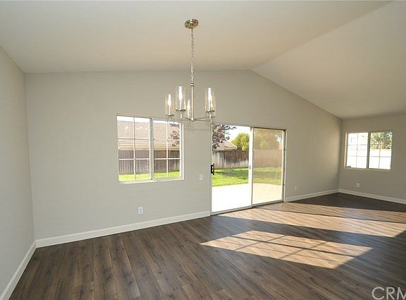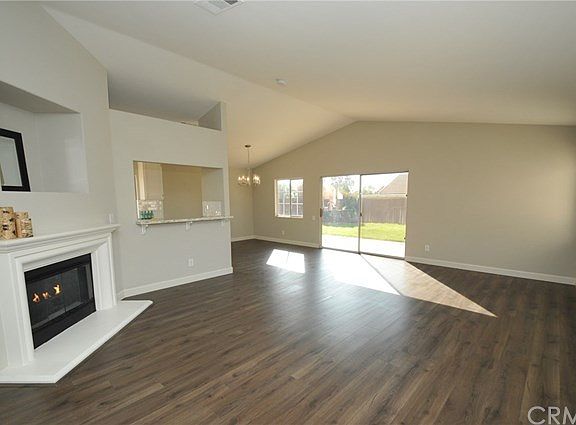 You'll love the open floor plan of this Beaumont home with high ceilings, fireplace, media niche in the living room, dining room with chandelier, and galley kitchen. The bright kitchen has white raised panel cabinets, quartz counter tops, new fixtures, pantry and stainless steel appliances. Wood laminate flooring flows through these living areas, and each bedroom is freshly carpeted. Each bathroom offers quartz vanities and quartz tops, framed mirrors, new lighting, and tile floors with dual sinks, separate shower and large tub in the master. The large backyard patio is accessible from the dining room and from the master, framed by lush green grass, a great area for kids and pets. All has been freshly painted with soothing colors too. Also includes central air and heat, attached 2 car garage, and laundry hook ups. Don't miss this home, come see it today!