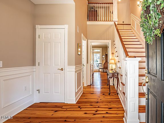 Distinctively Southern, Grand and Spacious Home with Lovely Curb Appeal. Designed by renowned architect, William E. Poole, this special home has been maintained, updated and loved by original owners. Enjoy wonderful outdoor living spaces with gracious covered front porch and large back deck nestled among Live Oaks with peaceful pond and golf views. Custom details include lovely millwork throughout, beautiful Heart Pine flooring on main level, built-in wet bar and wall of windows in Carolina Room and amazing storage! Kitchen is well appointed with stainless appliances, granite countertops, breakfast area and access to deck. Downstairs Master bedroom has updated bath, lovely views of pond and deck access. Formal Dining Room, Dedicated office, powder room, Family Room and Laundry Room complete the main level. Guest quarters upstairs include two bedrooms with shared bath and one guest bedroom with private bath. Easily accessed and abundant storage is also located on second floor. Bonus Playroom/Office/Media Room will be a favorite room for whole family! Simply Charming!