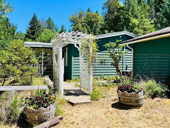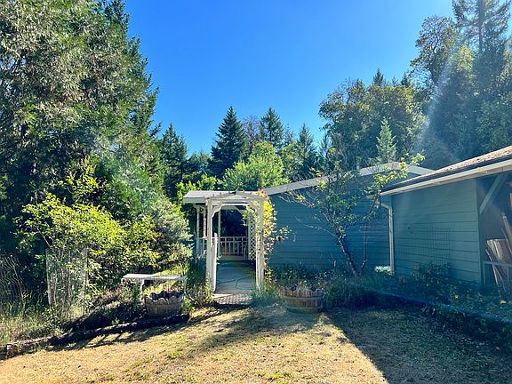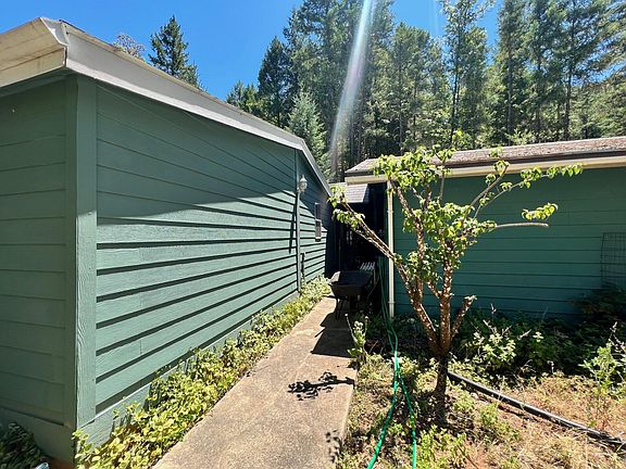 Back on the market; buyer changed his mind due to personal issues. Seller will contribute up to $8,000 towards buyer's closing costs. Two primary bedrooms! Peaceful and secluded, yet close to town. This country charmer sits on the back of a 7.84-acres lot with its own private driveway, it's surrounded by a beautiful forest, and a meadow in front of the house. The double wide manufactured home with concrete perimeter foundation boasts 2 primary suites (total 4 bedrooms and 3 bathrooms) with an attached 2-car carport, a workshop, area for firewood storage, a greenhouse, a shed, areas for gardening, and several storage spaces. Open living-dining area with a wood-stove. One of the larger primary suites has a separate entrance with its own fenced garden and a wraparound deck, it is a stick-built addition to the main house with building permits, great for guests, or as an in-law space. This property is approx. 1.5 miles from beautiful Lake Selmac, and 20 miles from Grants Pass.