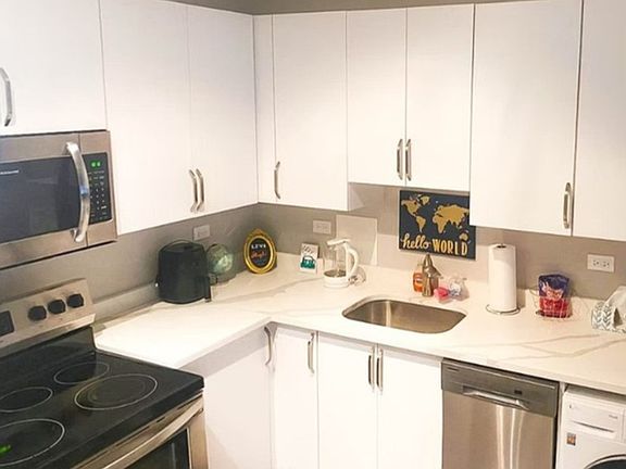Cosi studio apartment in the heart of Downtown Oak Park. Steps from great restaurants, bar, the movie theater, and the green station. Modern finishes like quartz countertops, new electric appliances, in-unit laundry. Unit has wall A/C and heat. Building amenities such as 24 hour gym, garage parking, lobby work area and bike storage.