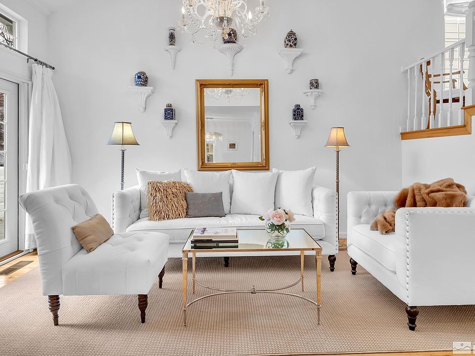 OPEN HOUSE Sat 4/1, 12-3pm. Whether you're looking for a serene retreat or the perfect place to entertain this home is it. This beautiful home is nestled among mature trees in the calming park-like setting surrounding Crystal Lake. Light and airy with beautiful white walls and dramatic cathedral ceiling, no detail has been overlooked in extensive high-end remodeling. Light Bellawood hardwood floors throughout. TWO master suites upstairs with third bedroom and full bathroom on the main level., The kitchen features white soft-close cabinets, granite counters, under cabinet lighting and a charming breakfast nook.The kitchen also has custom touches like an appliance garage, dog feeding station and a pull-down cookbook holder. Exit the formal dining area and living room through French doors to spacious and inviting covered and uncovered Trex decks. Upstairs, one master suite has views over the back greenbelt with French doors that open to a second-story deck; walk-in closet with built-ins; spacious bathroom with a gorgeous blue glass sink; and elegant free-standing slipper tub. The second master has tree views towards the front of the home and features built-in book and glass display shelves; spacious three panel closet adjacent to a large dressing area, modern vanity/sink and shower. The downstairs bedroom is the perfect office or guest room. The modern downstairs bathroom has a walk-in shower. Custom Roman shades and elegant draperies enhance the views from newer windows. Large second-floor laundry room has lots of storage. A lovely walking path from the back of the house leads over a stream then up and around Crystal Lake. The HOA maintains all the grounds and has picnic areas, tennis courts, a pool and RV parking--all for only $210 a month. A dog run and Tuff Shed are discreetly tucked away at the side of the home. The garage is fully insulated, has a wall heater, lots of storage and a new garage door. In one of the most central locations in SW Reno, you'll be close to the freeway, shopping, entertainment and recreation. Chandeliers are not included in the sale, but are negotiable. This home is a real gem that you won't want to miss.
