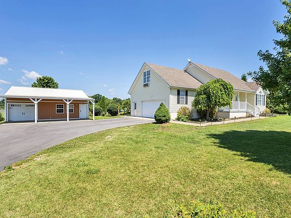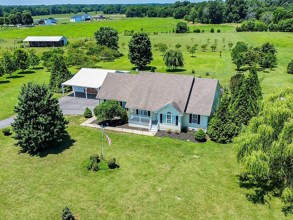 WELCOME HOME! Bring your horses & enjoy quiet living on this beautiful 5 acre mini farm w/ huge workshop! It features a cherry lined drive, rocking chair front porch, spacious living room w/ fireplace, country kitchen w/ ss appliances & refinished cabinets, formal dining, main level owners suite w/ tray ceiling & ensuite including double vanity, soaking tub & shower. Huge bonus room is perfect for family game night or home office. Fresh paint! Covered back deck overlooks pool, apple, peach & pear orchard, dual gardens, & sprawling green pastures. Well & City Water! Attached 2 Car Garage & Detached Workshop with 2 bays can hold your farm equipment, boat, car collection or be converted to a separate living space. Easy access to Downtown Shelbyville. ** Lease Purchase/Owner Financing Terms Available **