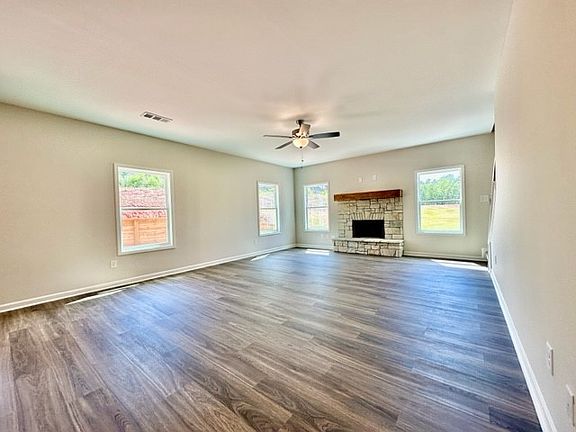 *** 5.25% 30 YEAR FIXED RATE or $12,500 in CC Assistance***. The OVERTON PLAN features entry foyer leading to beautiful Dining Room featuring trim accent wall. Open Family Room w/woodburning fireplace featuring brick surround. Kitchen features shaker styled cabinets, granite or quartz counters, designer selected tile backsplash, & Stainless Electric Range/Oven, Dishwasher, & Microhood. Open concept ideal for entertaining. On the second level you'll find the Large Owner's Suite a luxurious tiled bathroom w/ double vanity boasting granite or quartz counters, garden tub, & large separate tiled shower. Three guest rooms w/vaulted ceilings and a shared bathroom. Luxury Vinyl Plank flooring in much of the main level & tiled flooring in bathrooms. Smooth ceilings throughout, pre-wired & braced for fans in guest rooms. Fiber Cement Siding, Architectural Shingled Roof, & Rear Covered Patio. Special financing offer is dependent on credit criteria requirements.