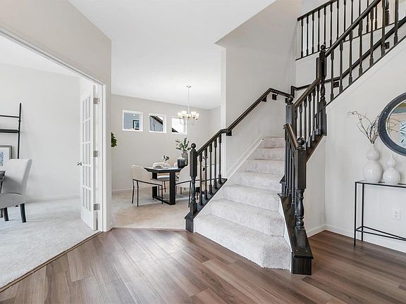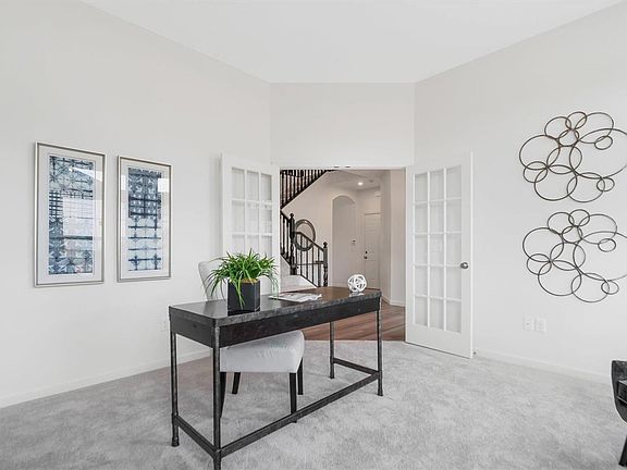 Spacious entry with a chic French door office/den, and an inviting dining room provides the air of elegance when you first enter the home. The upgraded kitchen features custom cabinetry, stainless steel appliances, granite countertops, and a sizable center island. Connecting seamlessly to the breakfast room and bright family room, it's perfect for gatherings.