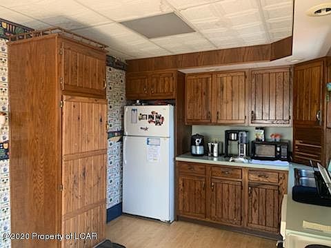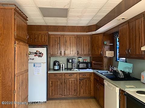 Hazleton 4 bedroom, 1 & 1/2 Bath! Full Yard with a pretty view, off street parking and large deck perfect for those large cookouts! Nice size garage but needs roof. The kitchen has lots of cabinet space and comes with stove, refrig, dishwasher, washer and dryer! It is Gas Heat! 3 zones for extra efficiency. There is a natural gas fireplace in the dining room as well. There is also a peach and