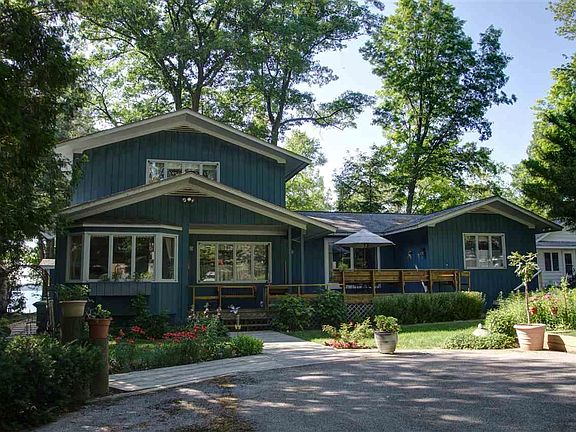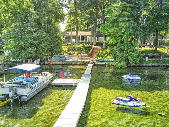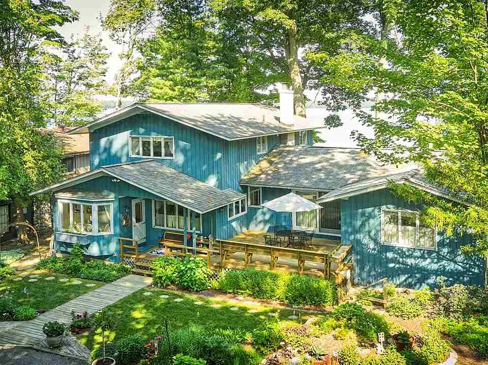 There is so much to love in this spacious Long Lake home! Set on 75' of sand-bottom frontage with a west-facing shoreline for sunsets, this property is slightly elevated above the water - enough to provide outstanding views but with only a few easy steps to the water. Cherished as a lakefront residence for many years, the home is generously sized and with 5 large bedrooms, it can easily sleep 12+ people with lots of room to spare. Highlights include two main-level living areas, both with sliders to the water-side deck, one with a wood-burning fireplace; a well-equipped kitchen with a breakfast nook and a butler's pantry with a pass-through window, a wine bar just outside the formal dining room, a main-floor master bedroom overlooking the water, a second main-floor bedroom, and a finished game room in the lower level. The upper level hosts the remaining three bedrooms and two additional baths, along with an abundance of storage closets; two of the upper level bedrooms share a balcony on the water side of the home. Several decks surround the home with plenty of space to entertain. Gorgeous landscaping graces the property with perennial beds and a relaxing water fountain. The trees near the water also hold a special secret - a hidden tree house! The young and young-at-heart alike will delight in this charming feature - with a built-in bunk bed it's suitable for sleeping while the water gently laps at the shoreline just outside. This beloved gathering space is ready for a new chapter - continue the story with your family memories on Long Lake!