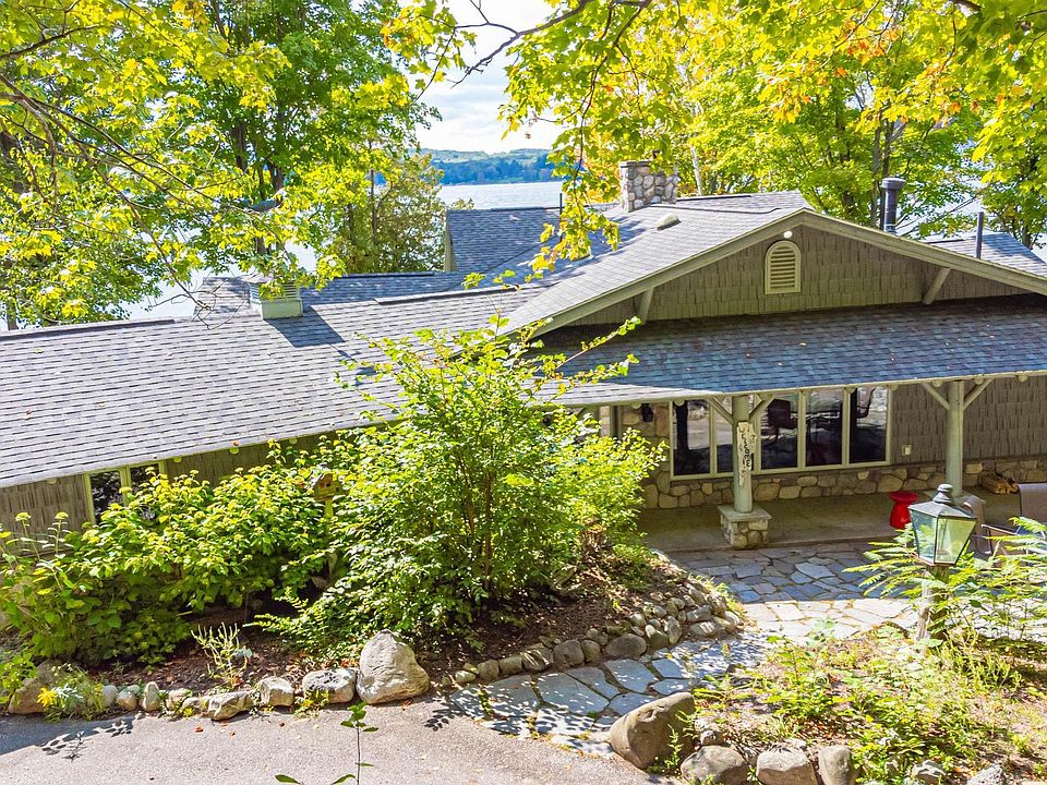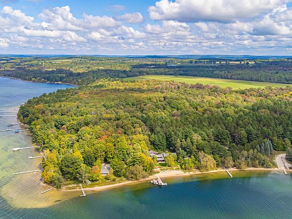 Incredible 25-acre property on Lake Charlevoix! Located on 428' of Dutchman's Bay, this property features 2 cottages, detached garages, and an additional pole building. The larger main cottage is a 2 bed, 3 bath and offers a spacious living area, well-designed kitchen for entertaining, and additional sunroom overlooking the panoramic views of the South Arm. The smaller cottage is a quaint 2 bed, 1 bath perfect for overflow guests' quarters or rental opportunities. Both cottages feature exposed logs, knotty pine, and several unique characteristics of endearing charm. In addition to the sunset views, this property sits on an expansive 25+/- acres of mixed pines, hard, and soft woods. With a substantial amount of land, this allows for a wide range of possibilities, such as creating walking trails, gardening, or even subdividing the land for future development. The main larger cottage has a paved drive with attached 2 car garage, and an additional detached 3 car garage. For added storage, the property offers a 40'x50' pole building with varying door sizes for multi-purpose use and recreational opportunities. Lake Charlevoix is known for its scenic beauty, and is a popular destination for boating, fishing, swimming, snowmobiling, and ice fishing. With such a large lot on Dutchman's Bay adjoining State Land, this property offers a high degree of privacy and is undoubtedly a remarkable find. It offers a blend of natural beauty, outdoor activities, and potential for customization making it a highly sought after property. Call today for details!