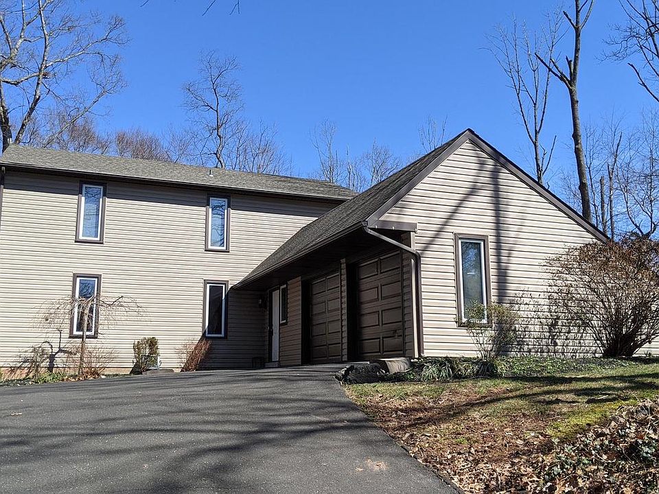 What an opportunity to own this unique home perfectly situated at the end of a Cul-De-Sac in a Serene Wooded Setting. The spacious floor plan allows for a first floor In-Law Suite/Fifth Bedroom with nearby Full Bath. Or these rooms can be used as the Living Room, Dining Room and Office/Craft/Play area. The kitchen boasts Island seating, Corian countertops, an abundance of cabinets, Pantry and Stainless Steel appliances. The expansive Great Room, highlighted by a vaulted ceiling, has two ceiling fans and sliders to the large Deck overlooking the Tree-Lined Backyard. Upstairs the primary bedroom features a Walk-In Closet and recently updated En Suite bath with a new vanity and separate stall shower. Three good-sized bedrooms and full bath complete this level. The Finished Basement provides additional living space and ample storage. Come see all this home has to offer!