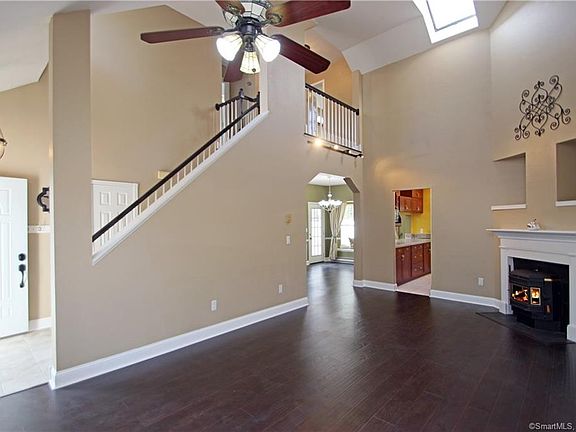 Welcome to the charming enclave of free-standing single family homes nestled on a quite culdesac at Fieldstone Village on Oronoke. This lovely unit is light & bright & offers an open floor plan w its vaulted ceilings & unique architectural appointments. Here you will experience the feeling of living in a "traditional style home" while enjoying the conveniences of condo style living. As you arrive, you will note the stylish front door. As you enter, you are greeted by a welcoming foyer, front staircase & large family rm all awash in neutral colors that work well together. The 2 story family rm has a pellet stove w large wall space for your full screen TV or art work. Many design layout possibilities exist due to size so you can arrange a combo casual family rm & living rm or home office space. The space flows to both the kitchen & formal dining rm. The kitchen offers granite counters, rich wood cabinets (42 inches)/drawers & SS appliances. A pass through from the kitchen to the dining rm is perfect for entertaining guests while the cook does their thing in the kitchen without missing any of the conversation. The spacious dining rm has lovely trimwork, chair railing & a window seat looking out to the private fenced yard.Upstairs find the vaulted master bedrm & guest bedrms w walk-in closet & master bath off the master bdrm. Convenient Washer/Dryer is located on this level. 1 car garage. Minutes to I84, Naugatuck CC, acclaimed Country Club of Waterbury, Chase Day School & shops.