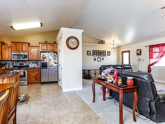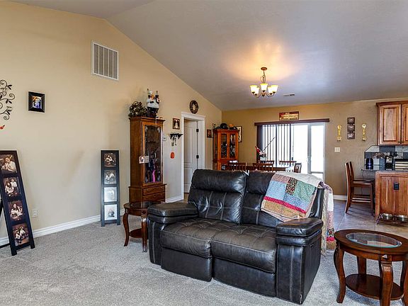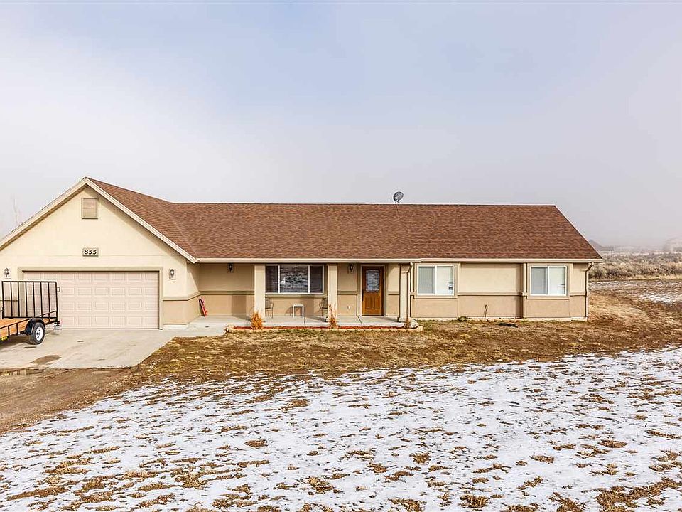 Located almost at the base of the Ruby Mountains this Beck Construction home was built in 2013. The floor plan is very open with knotty cherry wood cabinets in the kitchen and bathrooms, granite counters, ceramic tile floors in the wet areas and carpet throughout the living and into the bedrooms. The master bedroom has a walk in closet and attached bathroom with a double sink vanity. The home is situated on a 2 acre flat lot.