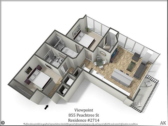 This 1000 square foot condo home has 2 bedrooms and 2.0 bathrooms. This home is located at 855 Peachtree St NE, Atlanta, GA 30308.