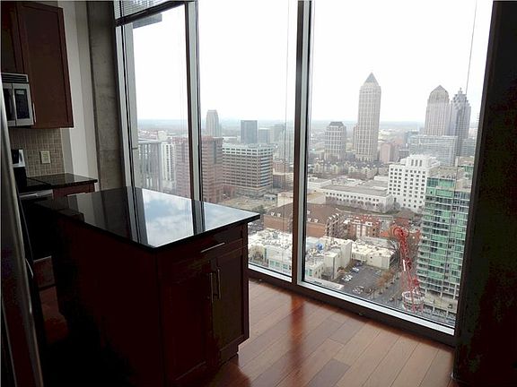 29th floor one bedroom condo with incredible views north of Midtown skyline. Amazing wall of floor-to-ceiling windows. Hardwood floors, bright open kitchen. Balcony off living room. One assigned parking space. Great condo smack in the middle of Midtown, walk to all midtown has to offer. Marta train nearby.
