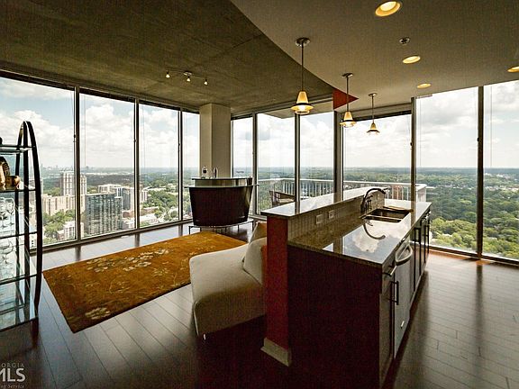 As you enter this 34th floor corner unit you are immediately drawn to the spectacular views of Midtown, St. Mountain, Buckhead, & Piedmont Park. Floor to ceiling windows, open floor plan, gleaming hardwood floors, & more. A spacious master suite with a custom closet, custom shoe storage, sep. bath & shower. A Murphy bed in the second bedroom offers versatility. Luxurious amenities include a jr. olympic size pool, grilling areas, outdoor fireplace, catering kitchen, club house, & gym. Located on the Midtown Mile & walkable to Atlanta's finest restaurants and shops.