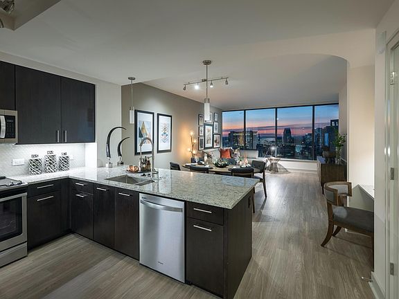 "BRAND NEW CONSTRUCTION RENTALS - CONTACT US NOW FOR SEPTEMBER, OCTOBER, AND NOVEMBER MOVE DATES. Incredibly large 1 bedroom unit in an amazing full amenity rental building with stunning city views! Units come with hardwood floors, Floor to ceiling windows, in-unit washer/dryer, and stainless steel appliances. Building features a gym, sauna, steam room, pool, and business center.