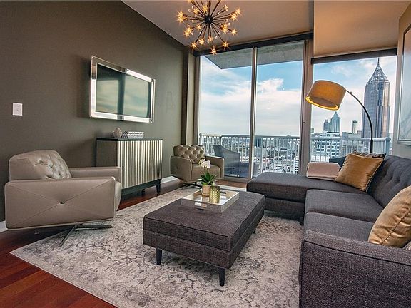 Stunning condo in one of Midtown's most desirable buildings. One of Viewpoints largest floor plans or largest 2/2 floorplan. Decorator upgrades throughout including upgraded backsplash in gourmet kitchen, brand new granite extended island, stainless steel appliance package, floor-to-ceiling windows, custom built-ins throughout, finished ceilings, designer grade pendants, fans and fixtures, motorized blinds, seamless shower glass, breathtaking downtown, sunrise, and sunset views, hardwoods throughout. Walk to everything including MARTA, restaurants, events and more.