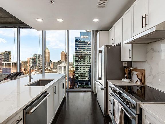 High-rise luxury living in the heart of Midtown with Million Dollar views. Located in the sought-after Viewpoint, this 18th-floor 2-bedroom, 2-bath corner unit plus dining space residence delights with a large open floor plan highlighted by stunning north and west skyline views. The home features a professional-grade kitchen outfitted with stainless steel appliances - gorgeous white quartz and white cabinets. The kitchen spills into the living room that is filled with light from its stunning views. The two bedrooms both feature en suites, closets with shelving and large bathrooms. Washer and dryer are located in the hallway closet. Two reserved parking spots. World class amenities include: pool, fitness center, valet, concierge, guest suites, massage rooms indoor/outdoor entertaining, dog walk and more. Second-to-none in walkability, shopping, and desirable restaurants, convenient to Marta, Piedmont Park, Georgia Tech, Google and all that Midtown Atlanta has to offer!
