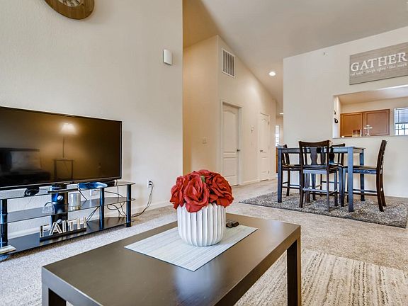 You will be proud to call this Condo your home and will be the envy of your family and friends ! * VACANT and immaculate, ready to move in shortly after your quick application process. * Spacious 2 bedrooms with 2 full Baths. * 9' Ceilings residence located on ground floor. Private, Light bright and Airy. * The condo & building is equipped with a fire sprinkler & fire alarm system. * Newer condo in well maintained building with manicured lawns, within a residential community. * Master bed w/walk-in closet * Laundry room with washer & dryer in the Condo. * 1 car attached garage with remote control + 1 dedicated parking space on property. * Within walking distance to elementary school. * Easy access to Tollgate Walking Trails. * Close to mall and other shopping, all amenities, Center Pointe Light Rail Station at Alameda and Sable w/connecting bus lines, * Park-N-Ride. * Non-smoking building and no pets allowed. * Easy commute to DTC & DIA. * Application fee of $27 for each adult * Tenants pays for their utilities & water. Landlord pays for trash, snow removal & ext. maintenance * Typical Renters insurance required for mutual protection. Tenant pays for utilities & water.