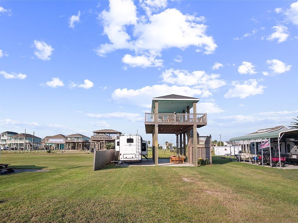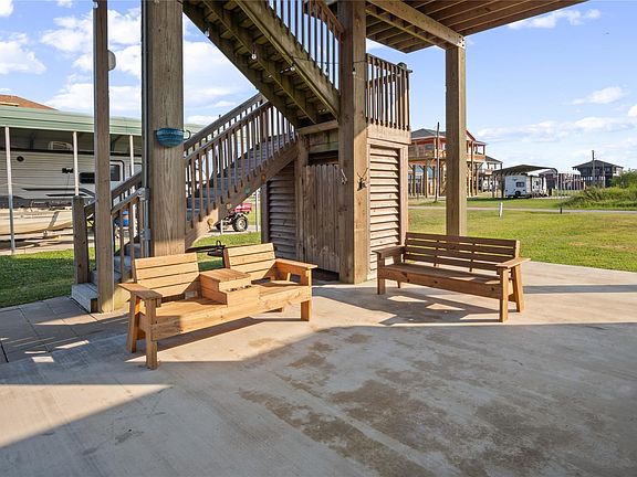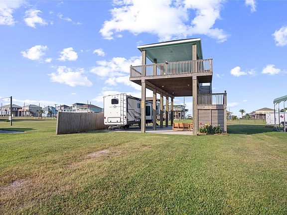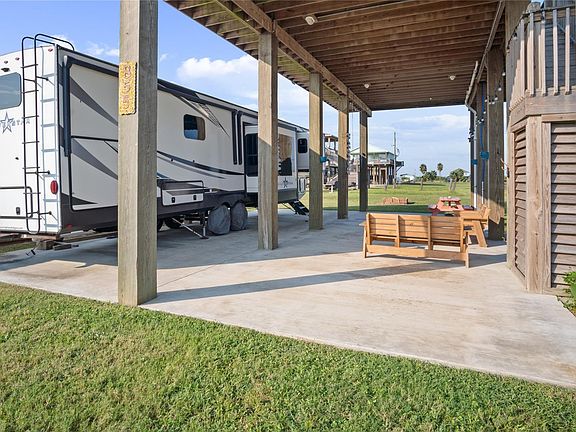 This RV Port is windstorm certified so it is insurable per seller! Want an RV Port but still craving a full bath, bedroom and mini kitchen at times? This place checks off all of those boxes! Located on the beach side of Hwy 87, just a short walk to direct beach access! It's perfect for those who love their RV but also want a little space to stretch out or simply house other guests! The cozy space up top offers great views of the beach and just the right amount of living space for even minimalist full time living, rental or just a vacay get-a-way for personal/family use! But check out that deck!!! Great Gulf views & seating for enjoying morning sunrises or evening sunsets! It's the perfect package all wrapped up in one! There is even a sand shower! What are you waiting for? Located In the heart of Crystal Beach so it's convenient to shopping, restaurants, fishing, crabbing & short drive to the ferry. You will absolutely fall in love!! Comes furnished, RV excluded. 14 x 44, slab 32 x 44.