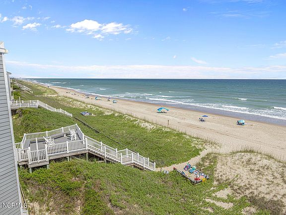 --TASTEFULLY UPDATED, DIRECT OCEANFRONT, TOP FLOOR END UNIT WITH VIEWS GALORE! Here a view, there a view, everywhere there's a view. From Atlantic Beach to Emerald Isle and beyond, ocean views abound. The immaculate interior has fresh paint throughout, luxury vinyl plank flooring and open living. The great room features soaring cathedral ceilings, a convenient dry bar with extra cabinetry, a wine fridge and unparalleled ocean views in all directions. Impressively redesigned, ocean view kitchen with a massive shiplapped breakfast bar, recessed lighting, abundant updated, easy-close cabinetry and drawers, gorgeous granite counters and stainless steel appliances. Prime plantation shutters adorn all windows and the sliding glass door. Full sized stacked washer and dryer. The principal suite includes three closets, more ocean views and a completely redone bathroom with an updated vanity, tiled flooring and a custom tiled, walk-in shower with a rain shower head, built-in seat and glass door. In the hall bathroom you'll find similar updates to the vanity and flooring along with a tub with custom surround tile. Ocean view second bedroom. Completely a cut above, this prime property aesthetically outshines the bunch. Recreational amenities include the Atlantic Ocean at your backdoor, a community swimming pool, hot tub, covered picnic area, grills and basketball goal. The complex also has multiple elevators, covered parking, boat storage, beach gear storage and an outdoor shower.