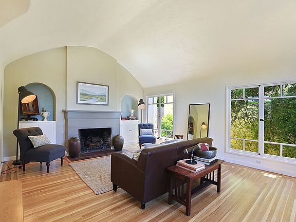 This 1920's Mediterranean is just half a block from Solano Ave, surrounded by trees and set back from the street, and it feels private and peaceful. The home has Bay Views from the dining and living room and is rich in architectural details - from the stunning vaulted ceiling and chapel-style windows in the oversized living room to the alcoves and built-in cabinetry placed throughout. With sunny bedrooms, this house functions beautifully as a 3 bedroom, 2 bath, with an additional room perfect for an office, guest or family room. There is plenty of storage in the basement, which works well as a workshop, a separate laundry room and a detached garage. The front yard is beautifully landscaped with native plants, side yard is ideal for more planting, and the back patio is sheltered from the Bay breeze, perfect for outdoor eating, playing or relaxing. A few steps from the bus to SF and Solano Ave, with all its restaurants, cafes, parks, schools, markets, bookstores and so much more!