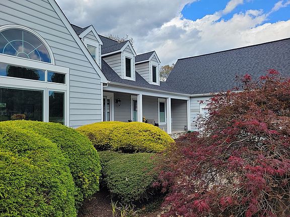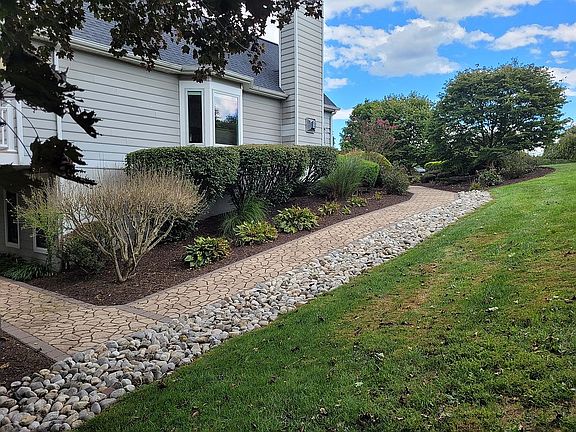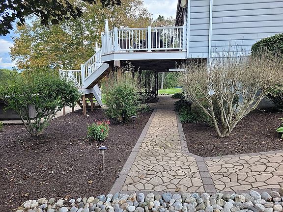 Beautiful custom transitional home by McDonogh Builders. Open floor plan with two story foyer & vaulted ceilings with lots of recessed lighting in the great room/dining/kitchen/breakfast, first floor master with slider to deck & laundry (LG W/D 2020). Tons of natural light. Two pantries, and extra cabinet space in island and dining room. Main level: Master BR, Laundry/Mud room from garage, 3 ceiling fans, kitchen island with barstools, refinished & stained hardwood floors (2022), Mendota propane fireplace with stone wall (2018), surround sound wired. Large custom (three areas) deck with Trex and railings (2005), staircase to lower stone patio, retractable Sunbrella awning, wired outdoor speakers, grills, gas firepit and furniture. Incredible private view! Second level: three large bedrooms all with ceiling fans, bathroom with extra storage, new carpet (2023). Lower level: Updated tile bathroom (2019), new large walk-in cedar & tile closet, Pergo flooring throughout (2020), ceiling fans & recessed lighting, four full-size windows & slider to stone walkway and large patio, additional baseboard electric heaters and corner fireplace. Three distinct rooms currently used as office, storage & conference space. (Use your imagination for game, media, extra bedroom, gym equipment.)