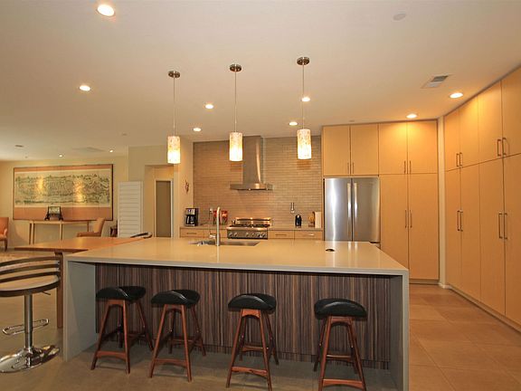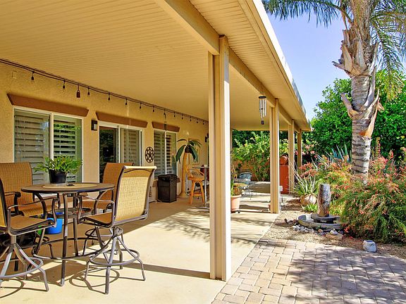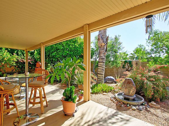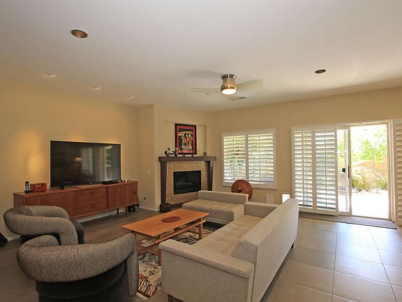 SAVE MONEY... own your own SOLAR PANELS. No more high power bills! Take a look at this Complete Bella Remodel! New modern tile flooring, wall removed to open up this floor plan, new kitchen cabinets, new large kitchen island with quartz counters, new appliances, plantation shutters, fancy new inside decorative doors, closet organizers and remodeled bathrooms. This ones also got a 3 car garage AND gated RV parking! Backyard has alumawood patio cover and lush landscaping. Walking distance to one of 3 community pools and spas, tennis courts, basketball court, and more. HOA is only 120/month. Fee land (you own it!) Community is located just off Palm Canyon, a short drive to restaurants, shopping, entertainment and the PS Tram.