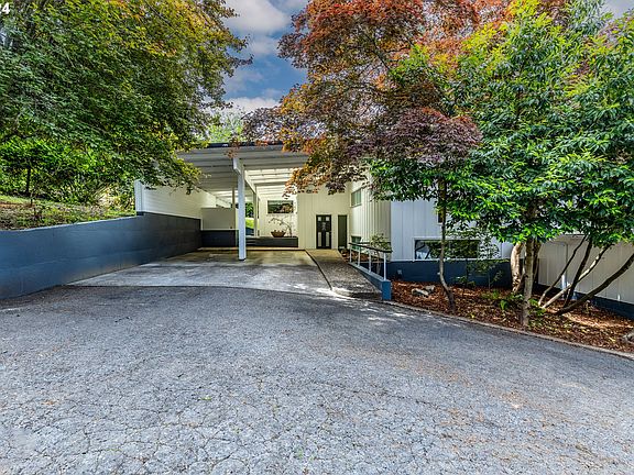 Built in the 1960s, this home is on almost an acre and it maintains its original mid-century charm while offering a guest house. The main house features a spacious and open floor plan, perfect for entertaining and family living. The large living and dining area, complete with a cozy fireplace and hardwood floors, opens onto a balcony with views of the private backyard. Kitchen has lots of room with its granite countertops, ample storage, eat bar & eat area with fireplace. Primary bedroom, located on the main level, offers balcony access and a bathroom. An additional bedroom on the main level provides flexibility for guests or a home office. Lower level includes two more bedrooms, laundry room and family room with fireplace. Guest house is 768 sqft. and is perfect for rental income or visiting family and friends. With its own living space, bedroom, bathroom, attached garage, it offers privacy and convenience. This unique property is situated in a Southwest Hills neighborhood, this home offers easy access to local amenities, schools, parks, and shopping.
