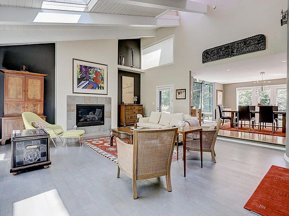 Stunning One if a Kind Contemporary on a 4.9 acre wooded lot in sought after location!. The ultimate in privacy and seclusion at the end of a private shared drive! Custom Kahler/Slater architect design with vaulted ceilings, skylights, and windows to bring your private nature space indoors. Seller reconfigured and renovated for 2020 living. Spectacular Open Concept Kitchen by Past Basket~ custom cabinetry ~ Grand Island with second sink Teak tabletop~ Herringbone wood floors~Formal Dining Room ~ Great Room~2 Fireplaces~Spectacular walkout lower level family room with space galore ! Upstairs a large Master Suite and master bath with soaking tub and steam shower. 2 more bedrooms and 2 more baths , a grand extra walk-in closet and second floor laundry finish the second floor. Unique&Fabulous!
