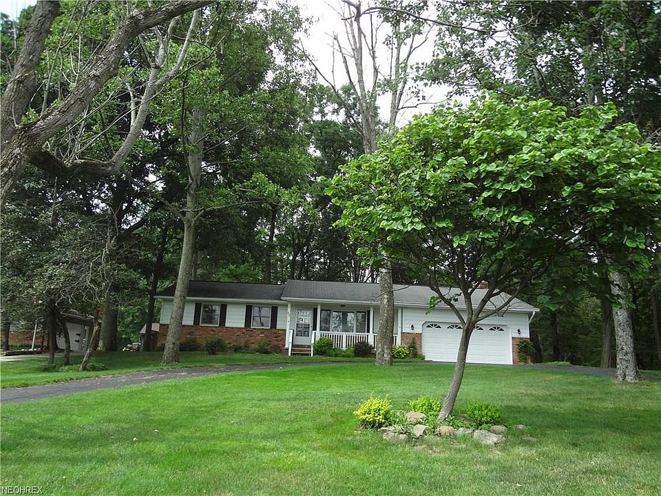 Location, location! If you are looking for park like property that overlooks the valley and also has your own private park like, rear yard...here it is! Step up the inviting porch into this spacious ranch home. As you come in the entry way you come into the living room and L-shaped formal dining room. The dining room has some nice built-ins. The kitchen has a dinette area and all of the appliances are included. The kitchen also overlooks the family room with a brick, wood burning, fireplace with shelving. From the family room you can access to the 2 car garage or go through the sliders to the deck that overlooks the rear wooded area that also leads down to a creek. You can access the back yard from here too that has the extra storage shed. As you go down the hall to the bedrooms there is a full bath with a tub and then off of the master bedroom there is a full bath with a shower. The lower level of the home just goes on and on. There is a huge recreation room with a large bar and some built-ins and a pool table. There is a bonus room, a full bath with a shower, a work room complete with work bench, a train room, and a laundry/utility area, and pantry. There are vented glass block windows in the lower level. The horseshoe drive also has extra parking room. The schools are rated excellent and you are halfway between Akron and Cleveland and close to all major freeways, parks, medical, shopping, etc. What are you waiting for come in and add your touches and make it your own!