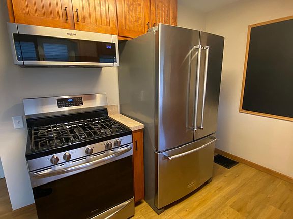Updated, well maintained home has lots of space and updates! From front deck enter the living area which flows to the kitchen and dining room as a circular floor plan. This cozy home has character with wood beams, some vaulted ceilings and wood floors. Kitchen has stainless stove, refrigerator, dishwasher, and microwave. Dining area has slider to backyard. The main floor has a large master bedroom with walk in closet and it is separated from the 2 other main floor bedrooms. There is a regular sized bedroom, and a small bedroom that is perfect for an office. There is one full bathroom on the main floor. Upstairs is a 4th dormered bedroom with its own lounge area. The basement is half finished with carpet as a large recreation room and there is a full bathroom in the basement plus laundry hook-up and a storage. Updates since 2020: new furnace and a/c unit, flooring, main floor bathroom renovation, basement shower, front deck, electrical updates, plumbing updates, new oven, new microwave, new dishwasher, tankless hot water heater, new metal roof, some new (ProVia) windows, including slider. Comes with use of the XL backyard shed. Front entry has ramp access. Pets considered for an additional fee. This is an updated, comfortable home with plenty of space and rooms that can flex to accommodate your needs! Renter pays all utilities. Lawn care and snow removal is tenant's responsibility. This is a one year although shorter leases will be considered. Security deposit and first month's rent due before moving in. Pets will be considered, there are additional fees for pets. Late fees will be assessed for any late rent payments.