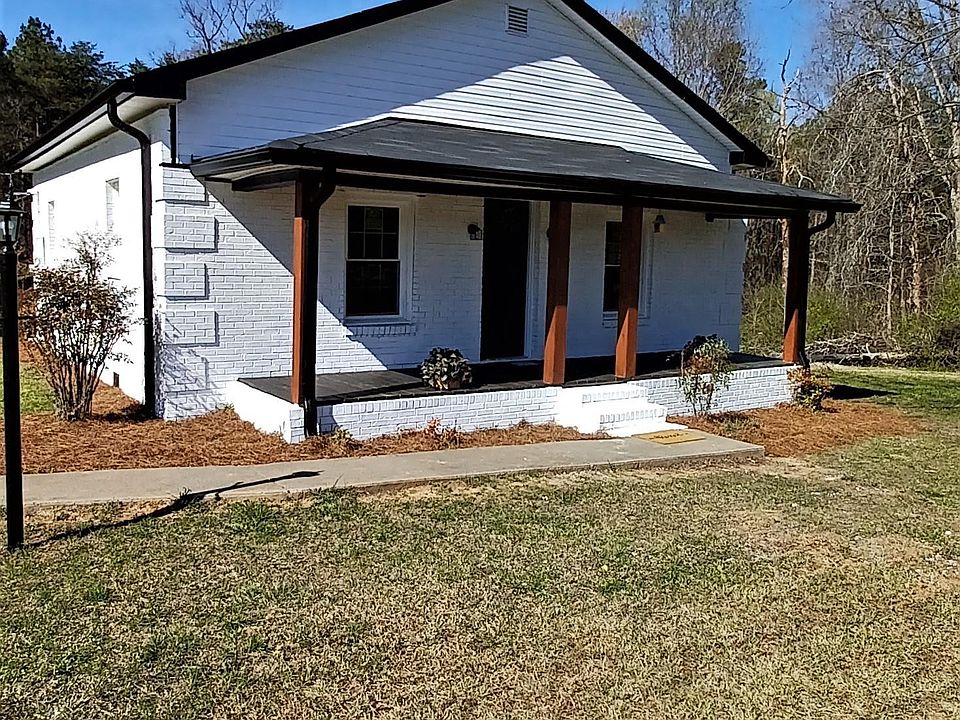 Totally remodeled with almost everything NEW, NEW, NEW! New Roof, Newly painted white brick exterior, Newly redone front and back covered porches, New windows, New doors, New flooring throughout, New bathroom, New kitchen with New stove, New refrigerator, New microwave and New dishwasher, New countertops, New backsplash, New HVAC, New paint throughout, New plumbing and more. Move right into this inviting home! Large lot with trees on 3 sides giving space and privacy!