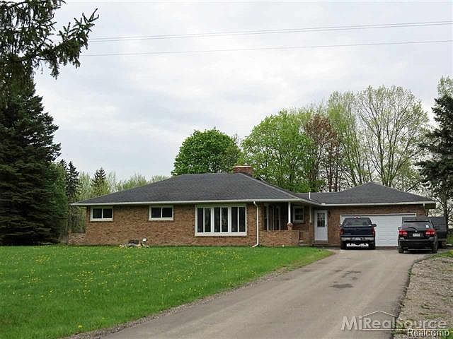 Country living at its finest. Peace and quiet yet close to Romeo and Almont. Full brick ranch situated on almost 6 acres and pond in North Bruce Twp. Features Walkout basement to lower patio. Nice kitchen with Maple cabinets, stainless steel appliances, and ceramic floor. Doorwall to 28x12 Deck. Home has Newer triple pane windows, furnace and central air. Living room with fireplace insert and blower. Master bedrm with shared remodeled bathroom. Remodeled 2nd full bath and laundry off mudroom. Added insulation to attic. Property features 20x40 pole barn and pond. Newer well with leased water softener. Home shows like new and offers great views from every window!