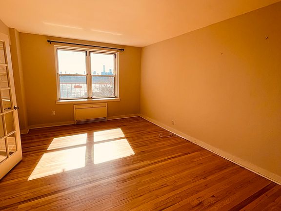 Bright and sunny large one bedroom with spectacular views of the NYC skyline. Hardwood floors, separate windowed kitchen with park and lake views. Large dining room area with French doors leading to a huge living room with 180-degree unobstructed views of Manhattan. Tons of closets, one walk-in. Large bedroom fits a King size bed. Just across the street is beautiful James J. Braddock Park, one of the largest and most beautiful of Hudson County's parks with lake and tennis courts. On the other side a large swimming pool with jacuzzi and full NYC views from the GWB to the Freedom Tower. Just steps to NYC and Ferry buses. Pet friendly elevator building with full staff. Rent includes heat and hot water. Indoor parking spot with remote control $130.90 extra. Available now. landlord pays for heat and hot water. Tenant pays for electric and cooking gas.