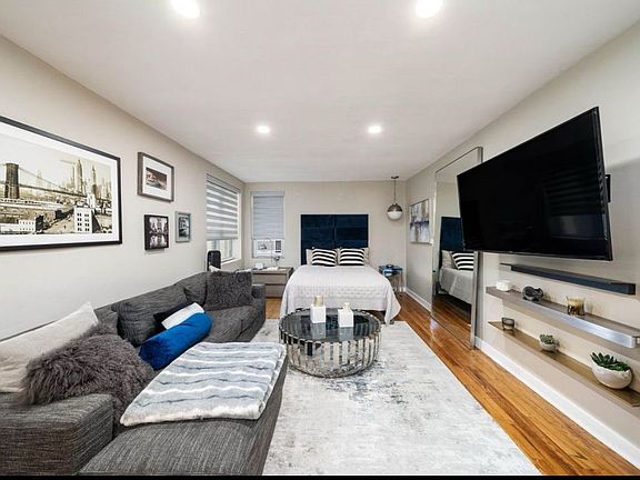 Commuters Dream! Cozy studio located between the Hudson River and James J. Braddock County Park with direct access to NJ Transit - located in front of the building. The apartment is located near Trader Joes, Whole Foods, Home Depo, Walmart, Banana Republic, Target, Home Goods, Sephora and many other shops not to mention the many wonderful restaurants that Edgewater, NJ has to offer. Among the many available amenities, you will enjoy New York City views, new windows, a new intercom system, newly renovated in-building gym, a beautiful pool and deck overlooking NYC and much more. For your convenience, the laundry room is located in the basement and can be accessed 24hrs. Upon request, additional storage space is available for rent. The apartment has wood floors and is fully furnished with a wonderful open kitchen. One year lease term with the option to extend. Water, heat, garbage and recycling pick-up are included within the monthly rent. Renter is responsible for gas, electric and internet access. In order to comply with the complex buildings "House Rules", renter must cover 80% of the apartments surface area with an area rug and be mindful of their neighbors especially when it comes to noise. Any changes that the renter would like to make to the apartment, they must first be discussed with the owner. No exceptions. ex. painting of the walls Applicant is responsible for the following fees: background check, community board application and moving-in (applicable to only those that are approved by the board). Pets: Small dogs would be considerate.