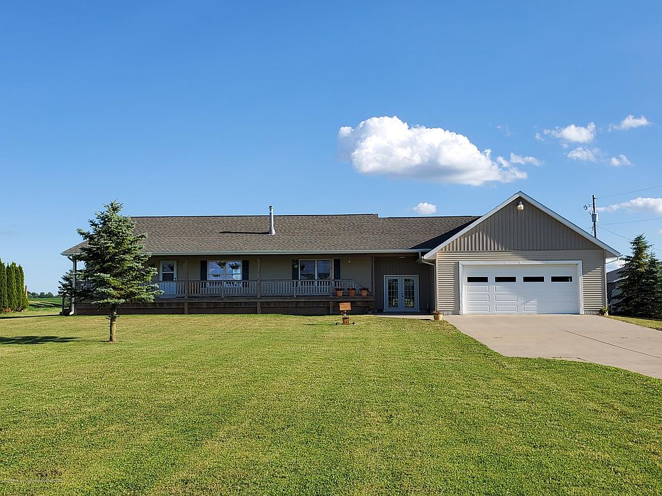 Look no further - enjoy country living with all of the perks! This home has over 1500 sq ft of main floor living space. It has 3 bedrooms - all with large closets, 2 baths, offers an open floor plan with plenty of living space, and is just a short drive to the high school. This home has several desired features including a natural gas fireplace, first floor laundry, a huge 24'x40' drive through garage with overhead storage, drain & water, a 10'x22' heated 4 seasons, a 6'x50' covered front porch, and a 8'x16' back deck roof with seamless gutters. The nice concrete sidewalk and turn around driveway are a perk to this must see home. There is a carport with sides out back, many new appliances, including central air in 2016, generator hook-up, 200 amp service and an additional 100 amp service in the garage, which is 2x6 construction. The basement has an ingress/egress window and is waiting for you to finish to your liking!