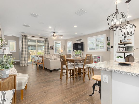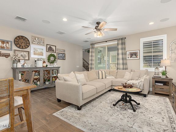 Come see your newer highly upgraded move in ready home in the gated community Tavera South! Ideal corner N/S facing lot. Cozy covered front patio with custom iron security door. Very open kitchen with great room floorplan with all the bedrooms upstairs, plus a small office loft area. Kitchen has large island with granite white cabinets, and gas stove top. Surround sound included, upgraded wood plank tile, plantation shutters, upgraded staircase and much more. Great backyard with artificial turf covered patio perfect low maintenance yard. Community has pool, heated spa and children's play area. excellent location close to 60 and the 202.Dont wait for a new build this one is ready to go.