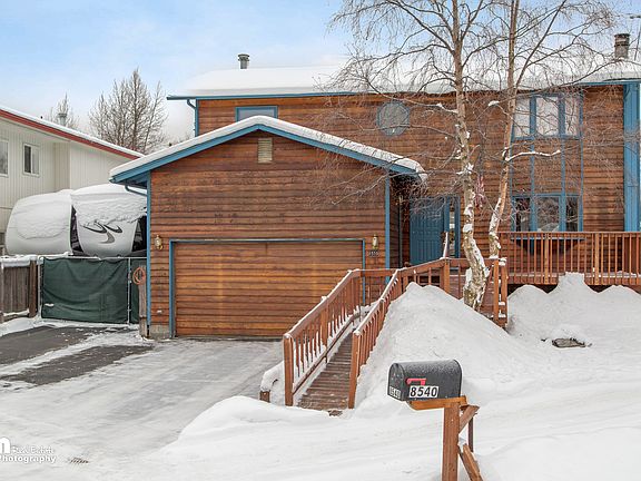 Beautiful family home on quiet cul-de-sac close to Far North Centennial Park with endless hiking and bike trails nearby. Huge fenced back yard and deck with southern exposure for summer BBQ's and fun. Isolated dog area and over 70 feet of RV and toy parking. Great school district (Abbott Loop, Hanshew, and Service) to raise your family. Kitchen remodel with granite countertops, resurfaced cabinets with new hardware, and updated stainless steel appliances. 4 bedrooms and laundry room upstairs. Master bath modernized using stunning granite and tile and includes views of the Chugach Mts. 5th bedroom or guest room in basement along with family room or use as mother-in-law suite. Driveway recently crack/sealed. Come check out this house. Call or text for an appointment. Call/text (907) 830-4651 More information copy and paste to address bar: http://www.8550gordoncircle.com/ Buyers Agents Welcome @ 3%