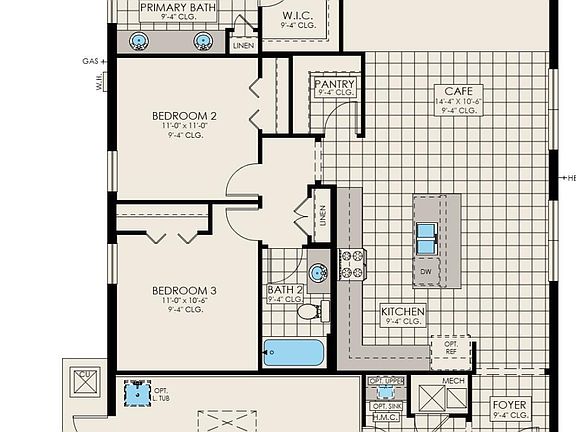 The Charlotte (3 bedroom, 2 bath) is an inviting home offering an open great room into a spacious café, kitchen and walk-in pantry. This home features a 12' sliding glass door at great room and 2' garage extension.