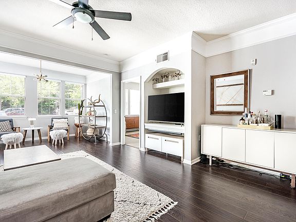 Step into a gorgeous ground floor condo at Montreux, 5 minutes from St. Johns Town Center and a short walk to Publix, coffee shop, and restaurants! Perfectly maintained, this beautiful space features 2 bedrooms and 2 full bathrooms and 1195 sqft. The open floorplan is perfect for entertaining your guests as the kitchen overlooks the large living room with 10' ceilings with crown molding. You'll have plenty of natural sunlight in your gorgeous Florida room to relax and read a book. Unit features upgraded dark vinyl plank flooring throughout kitchen and living room. Upgraded kitchen features include granite countertops with modern white honeycomb tile backsplash in the kitchen. Unit has NEW HVAC! Make sure to take a look at the well maintained amenities, featuring: 2 large pools...