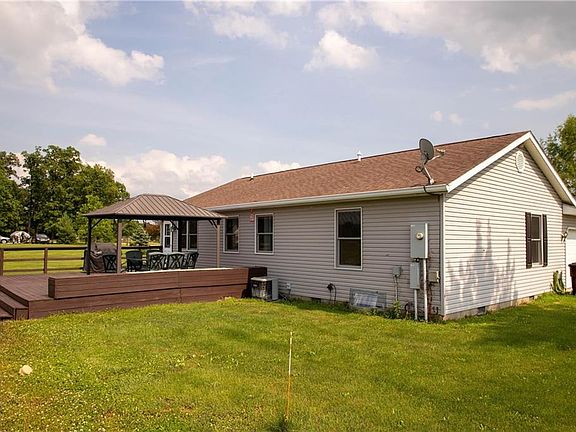 Beautiful country setting! This well-maintained home with 3 bedrooms and 2 full bathrooms is move-in ready. You will love the hardwood floors, the modern kitchen that is open to the large family room, walk-in closets throughout the home, and a huge deck with a gazebo. In addition to the 2-car attached garage, this property includes a 30 x 54 pole barn + an addition. This well-maintained outbuilding features 3 large bays plus workshop, storage, and office space and includes heat, AC, concrete floors, and a 2-post car lift. The one-acre lot backs up to fields and includes a huge side yard perfect for recreation and cookouts.