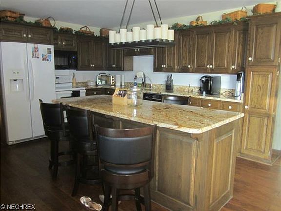 Wow! Beautiful 4-5 bedroom, 2 1/2 bath year around or vacation home at Tappan Lake. Stunning updated open concept kitchen includes new hard wood floors, granite counter tops, new light fixtures, and a stone fireplace. Installed is a large center island complete with a built in beverage cooler, pull outs for vegetables, and an auto pop up cupboard just for your kitchen Aide mixer! Newer kitchen windows and French door with built in blinds. Wood beamed ceiling in the living room add lots of character in this lake home. There is a bar room with access to the large covered patio. The Master bedroom includes attached office space with access to the large second story deck. Whirlpool tub/shower in 2nd floor bath. Whole house generator and reverse osmosis. Water softener is owned & stays. Large lot. Dock included. Seller is offering a one year America's Preferred Home Warranty. MWCD lease 2014 is $1,444.